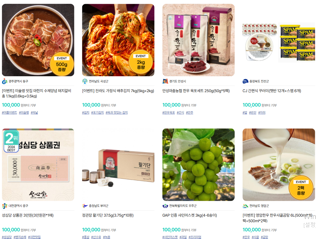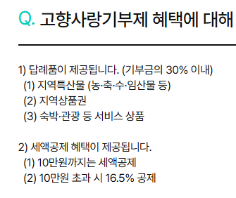 • 답례품: 3~4만원대 수준의 특산물 제공