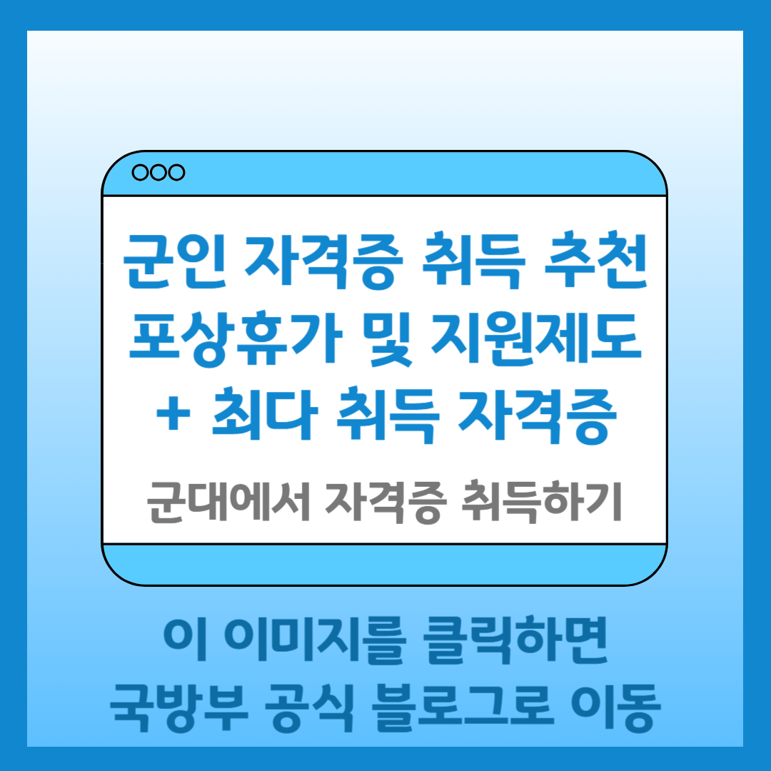 군 복무 중 자격증은 자기개발 + 휴가 + 취업 경쟁력까지 1석 3조 혜택! 계획 세우고 차근차근 준비해보세요.