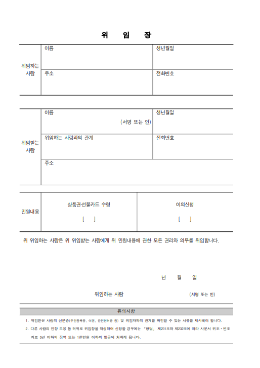 아래 버튼을 눌러 위임장 양식을 다운로드 후 작성하세요.