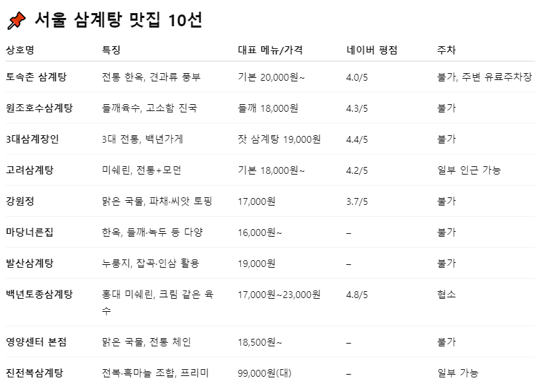 🍲 서울 삼계탕 맛집 추천 10선