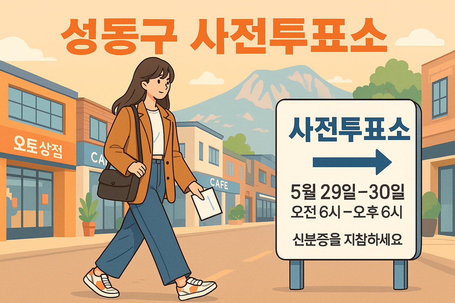 2025년 제21대 대통령선거를 앞두고 성동구 유권자들을 위한 사전투표 안내입니다. 사전투표는 본 투표일에 투표가 어려운 분들을 위한 제도로, 전국 어디서나 참여할 수 있습니다. 아래 내용을 참고하여 소중한 한 표를 원하시는 곳에서 편한 시간대에 행사하시기 바랍니다.