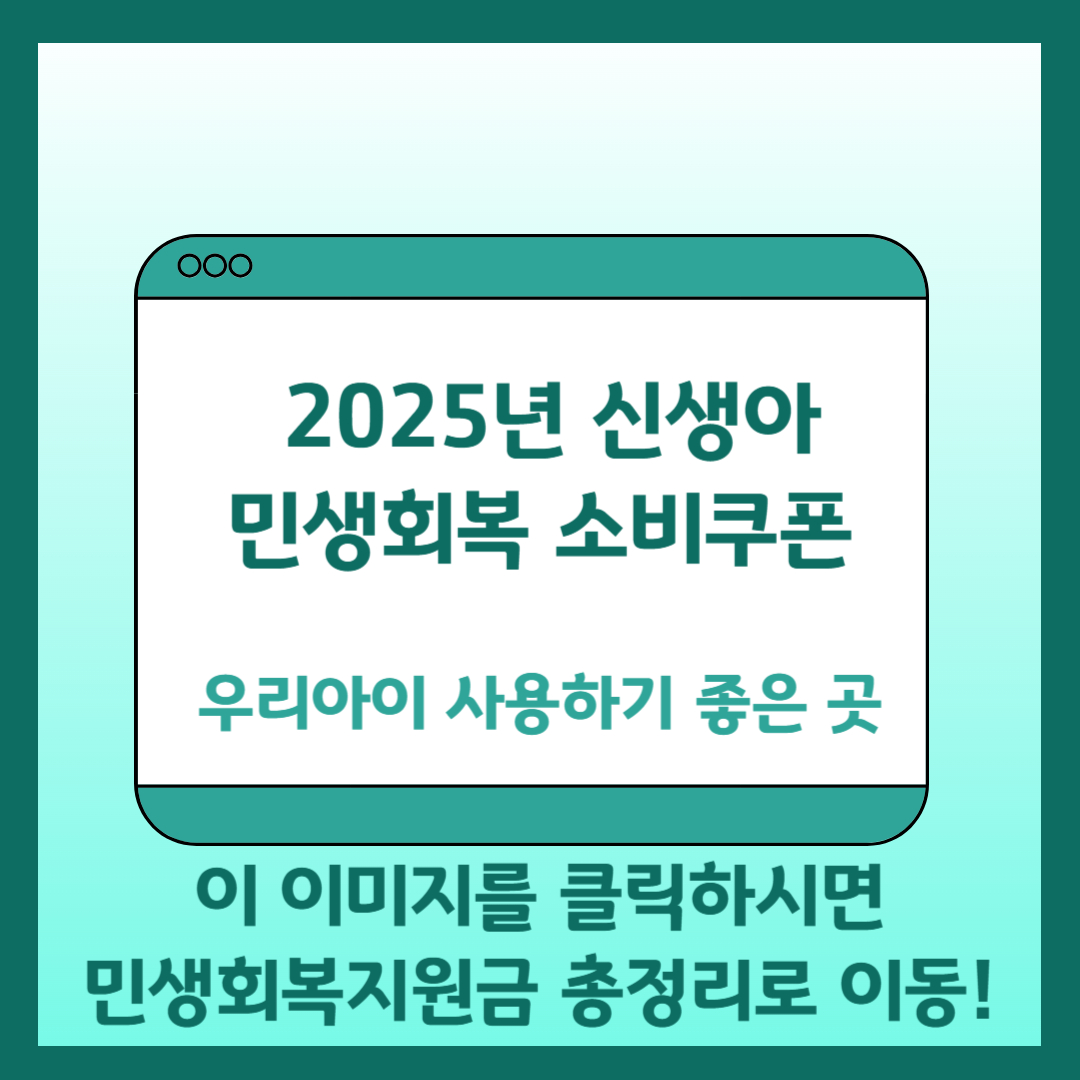 신생아도 받을 수 있는 2025년 7월 민생회복지원금! 신청 자격·방법과 부모 대리 신청 시 필요한 서류를 안내하고, 육아에 딱 맞는 사용처 20곳을 주소·전화번호와 함께 추천합니다. 주로 물어보시는 질문 및 답변 10가지까지 확인하시고 현명하게 소비쿠폰 사용하세요!
