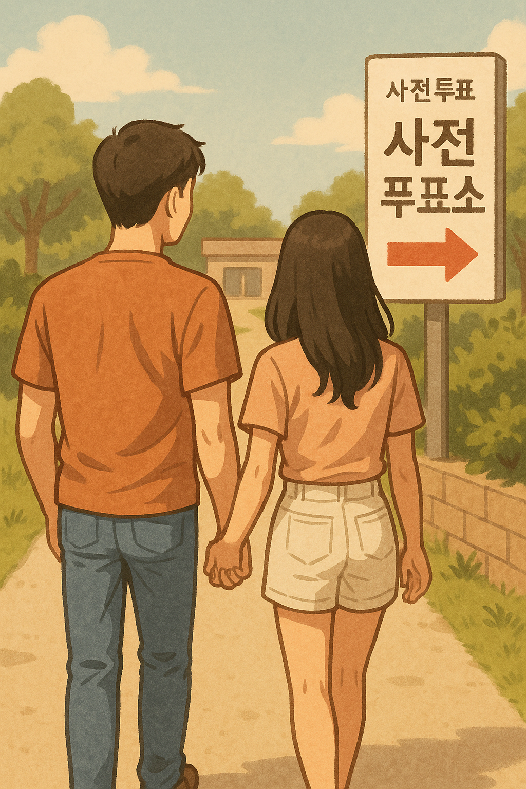 사전투표를 하러 가는 연인 이미지