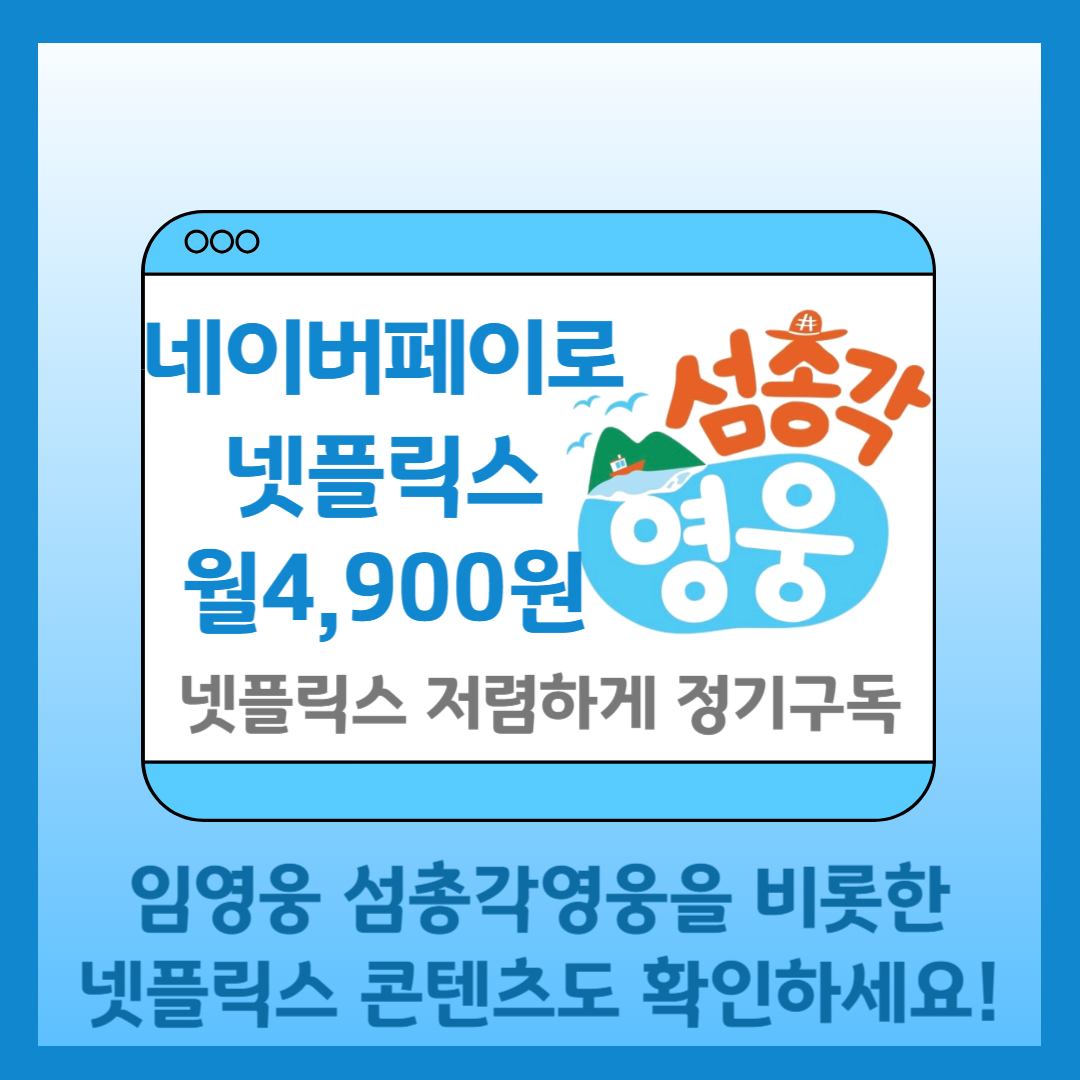 봐도 봐도 재밌고 힐링되는 섬총각영웅! 시간에 구애없이 넷플릭스로 편하게 다시 보고, 요금은 네이버페이(네이버플러스 멤버십)로 똑똑하게 아끼는 법까지 한 번에 정리하였습니다. 네이버페이 가입·연결·요금·혜택·해지 유의사항·트러블슈팅까지 실제로 따라 하기 좋게 단계별로 정리하였습니다. 실제로 저 역시 네이버페이로 넷플릭스를 온가족이 이용하고 있습니다!
