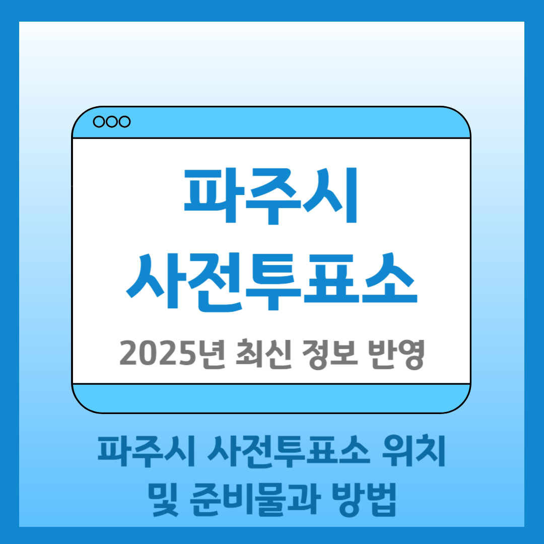 파주시에 위치하고 계신 분들이 사전투표를 본인 지역과 관련없이 자유롭게 이용할 수 있는 사전투표 정보입니다. 사전투표소 위치, 투표 방법, 준비물, 기간 등 필수 정보를 한눈에 확인하고, 소중한 한 표를 행사하세요.