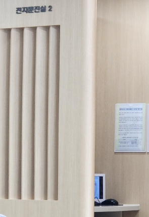 순번표가 나오며, 문진실 앞에 번호가 표시될 때 입장하실 수 있습니다. 문진 전에 사전 전자문진이 필수입니다.