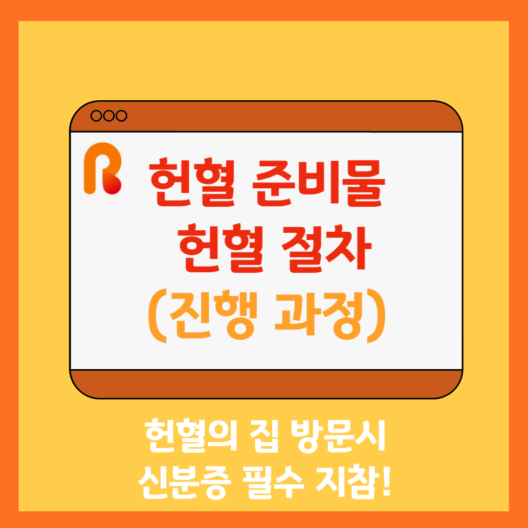 마음먹고 헌혈을 위해 헌혈의 집을 방문했는데 막상 헌혈이 불가능한 상황이라면 당황스러울 수 밖에 없습니다. 헌혈에 참여하기 위해서는 필요한 준비물(신분증)과 절차를 정확히 알고 참여하는 것이 중요합니다. 이 글에서는 헌혈 시 필요한 준비물과 헌혈 당일의 절차에 대해 자세히 안내드립니다.