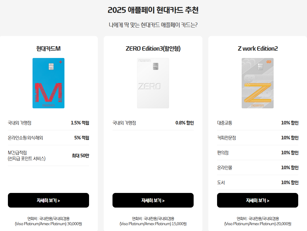 애플페이 지원하는 현대카드 바로가기