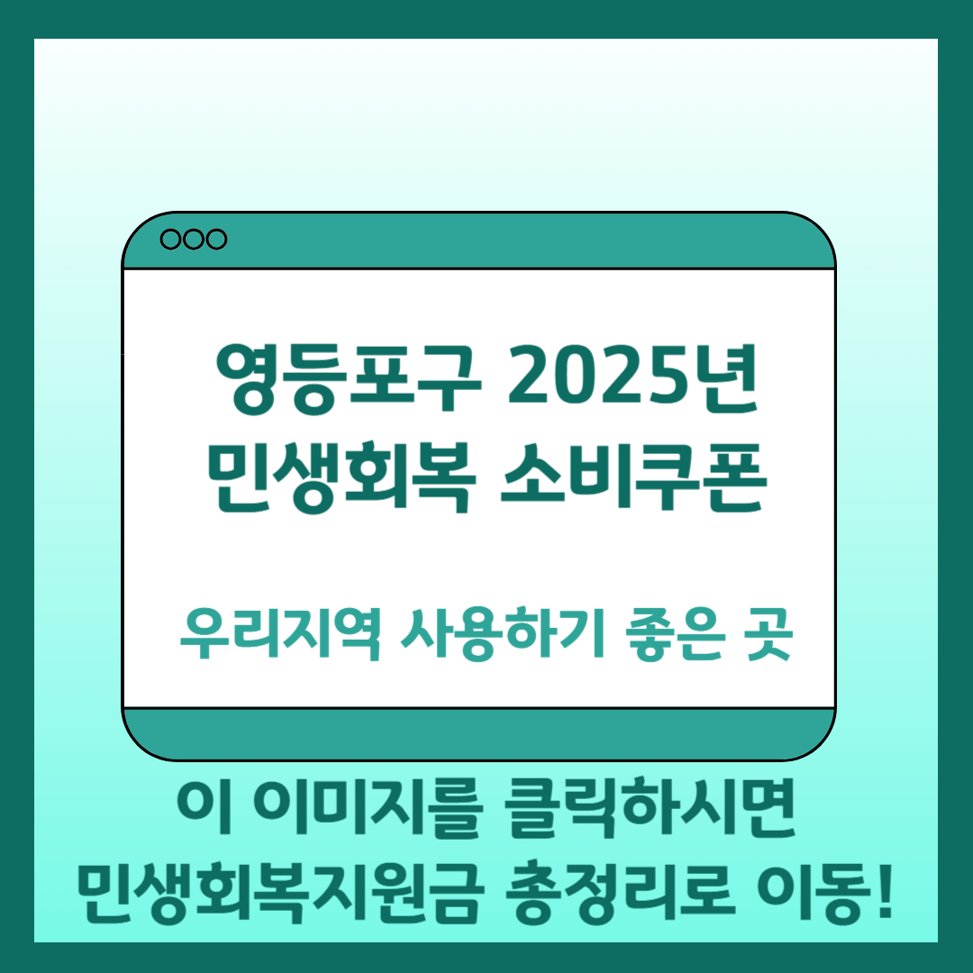 영등포구민은 민생회복 소비쿠폰을 통해 전통시장·음식점·카페·미용실·의류매장 등 다양한 업종에서 알뜰 소비로 지역경제 활성화에 기여할 수 있습니다. 지금 바로 온라인 또는 구청 방문으로 신청하고, 4개월 이내에 꼭 사용하세요!